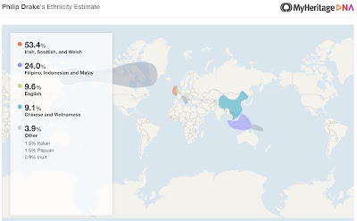 As my husbands relatives are very mixed heritage we joined MyHeritage some months ago to see if we could get more DNA matches and research leads for him there and we knew some of his relatives from the Netherlands have active subscriptions through this site.  It has proved to be a very beneficial move with his side of the family tree and I am having lots of fun adding new information and working out DNA match connections.  There are so many more DNA matches for him on the MyHeritage site, especially his very scattered Dutch East Indies distant family members.  It is really filling in some vital gaps for us and I hope to be able to knock down some brick walls in his trees with the additional information I am finding! The comparison of his Ancestry ethnicity estimate with his MyHeritage one is also interesting (see below).